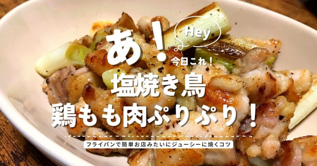 フライパンで簡単に作れる塩焼き鳥レシピ。鶏もも肉をぷりぷりジューシーに焼くコツをわかりやすく紹介します。外は香ばしく中はジューシー、お店みたいな焼き鳥を家庭で楽しめます。