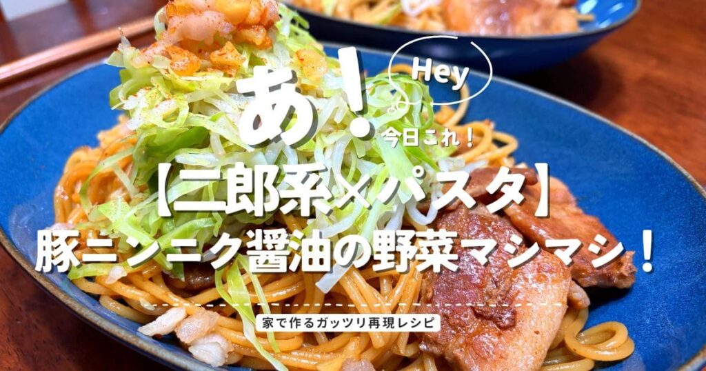 二郎系ラーメンをパスタで再現。豚ニンニク醤油の濃厚ダレに野菜マシマシ、ガッツリ満足できる背徳系パスタレシピ。